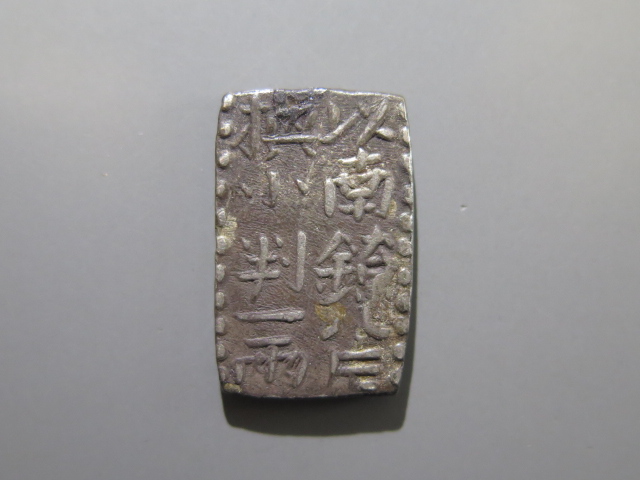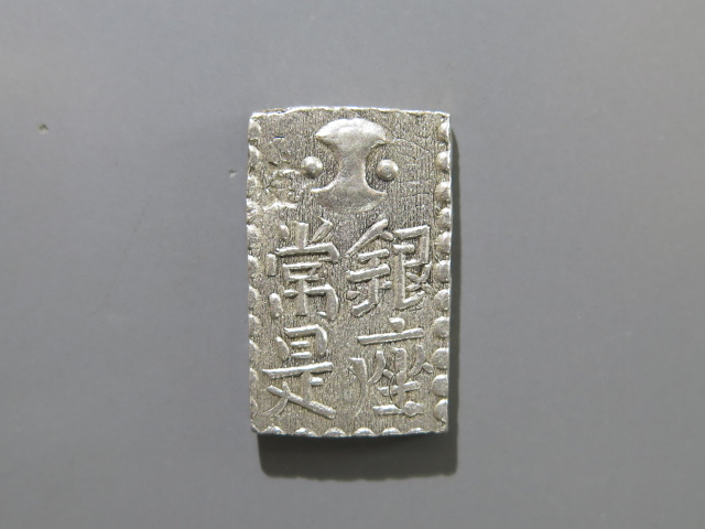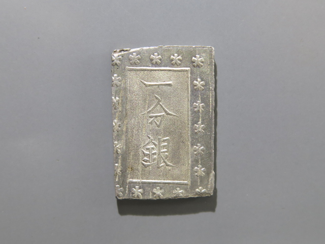 379番 明治一分銀 Hh ス山長柱銀 川常交差 |