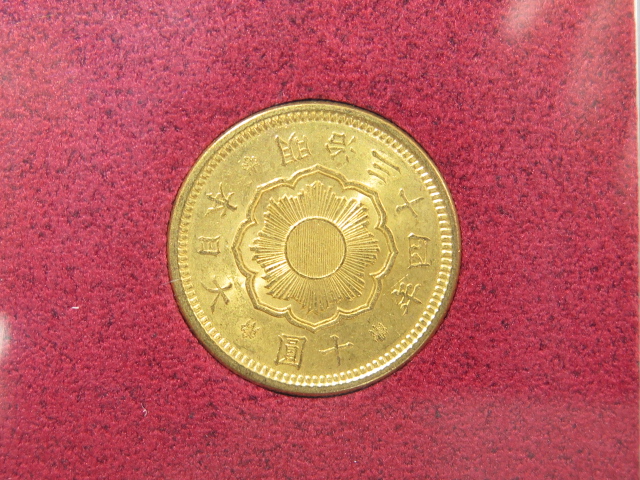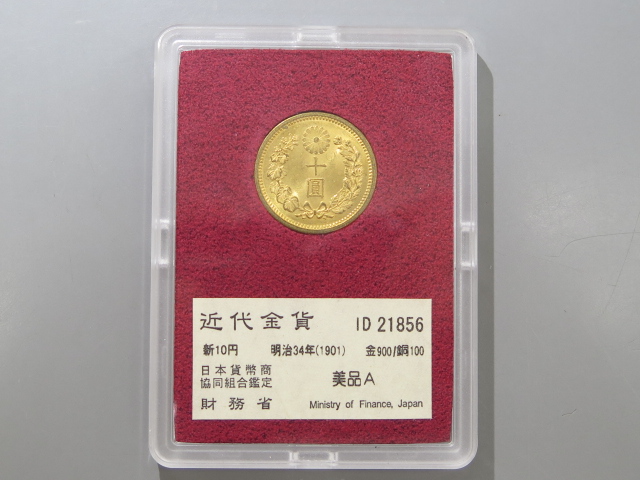 390番 新10円金貨 M34 財務省 美品A ケース入 箱無 |
