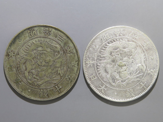 486番 旭竜50銭 M3,4 左約30度傾打 計2枚 |