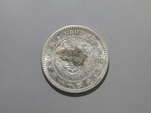 497番 朝鮮 20銭銀 大韓 光武11年 黒錆 |