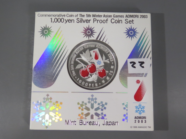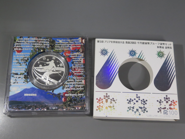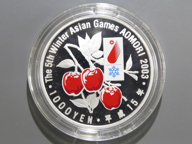 | 565番 アジア冬季大会1000円銀 りんご H15 ケース付 外箱にシール貼 |