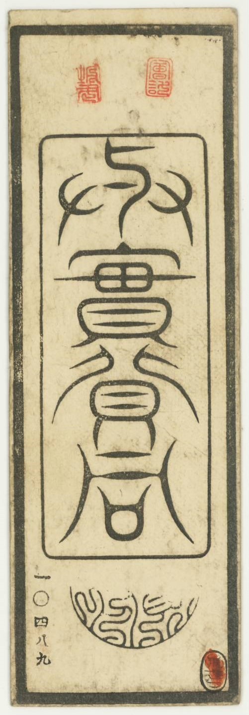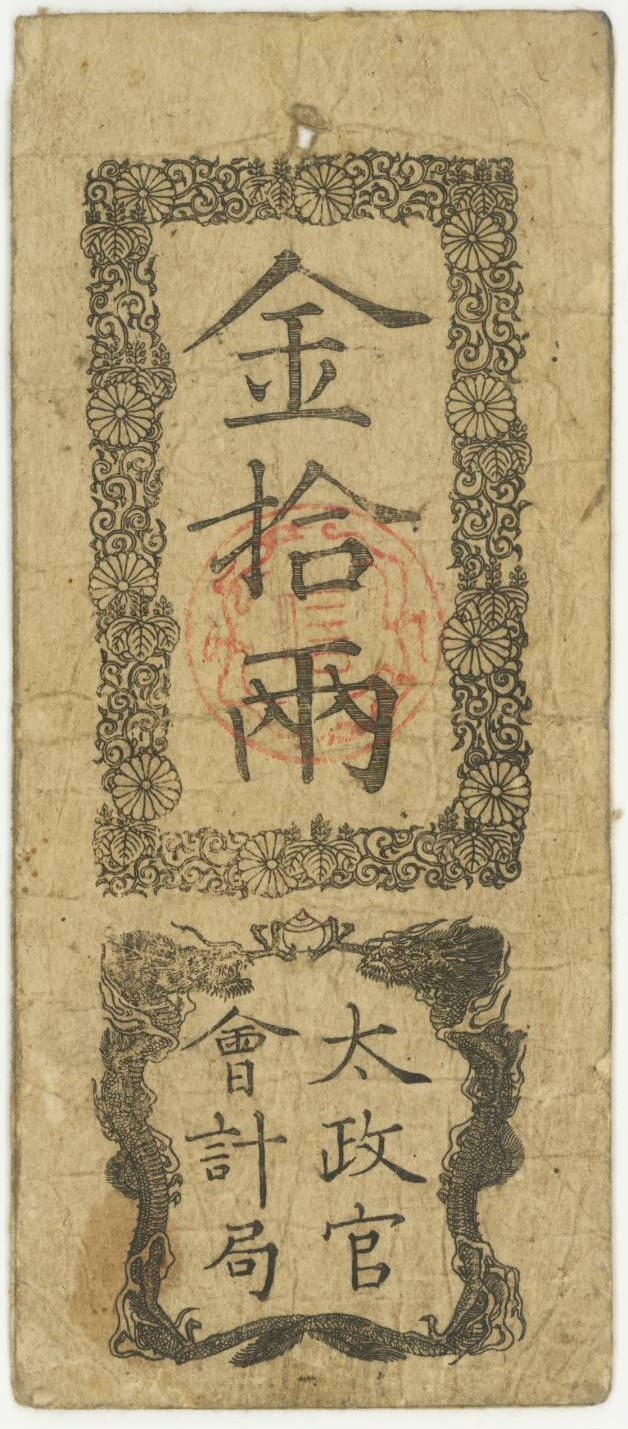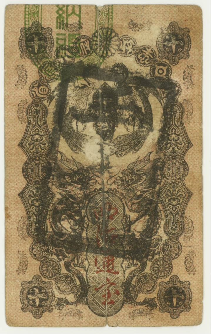 638番 明治通宝 十銭 変造札 (「手入札」黒印 表裏各1) |