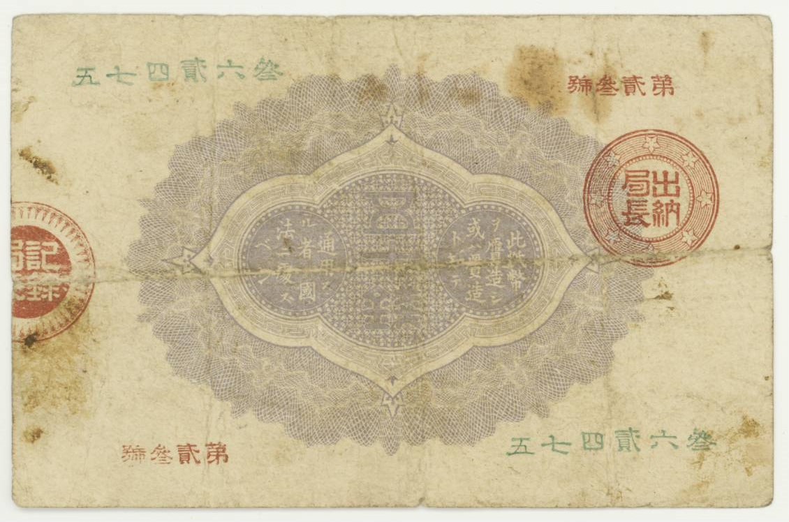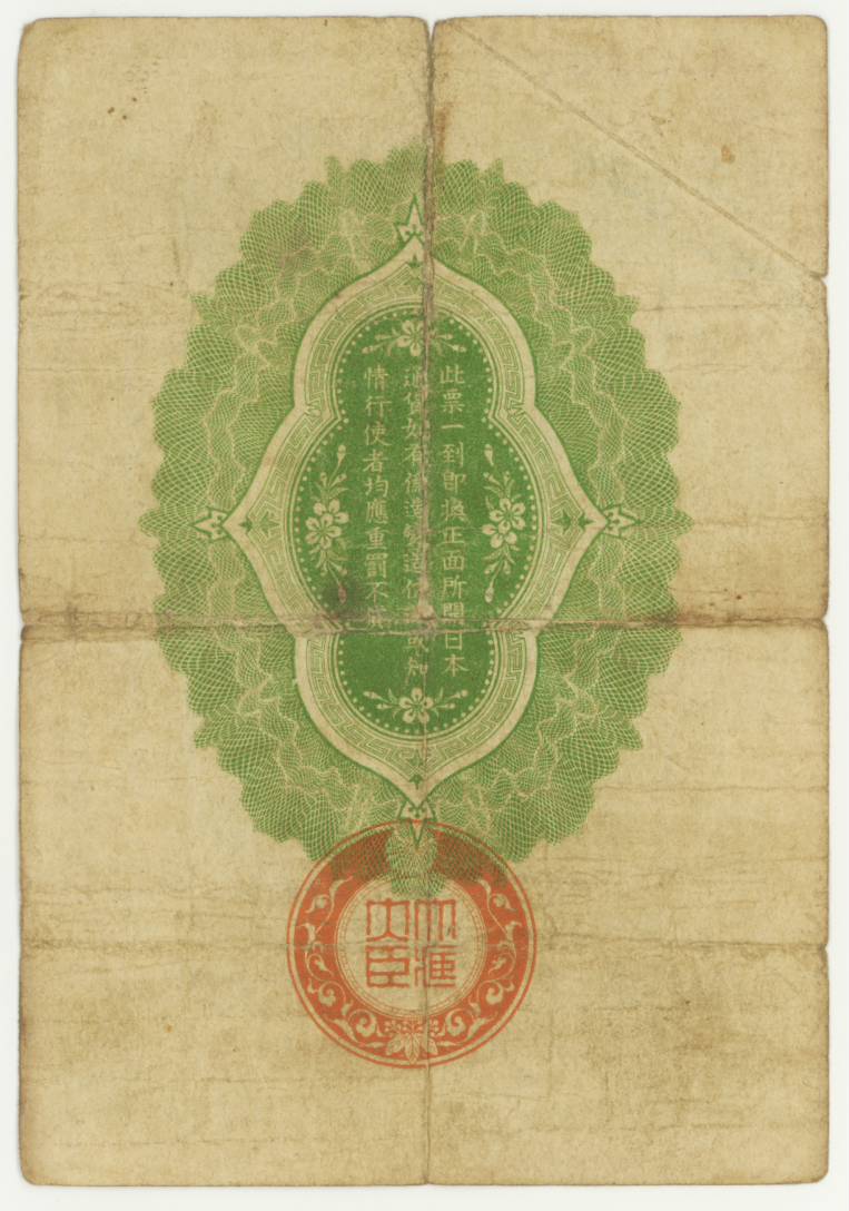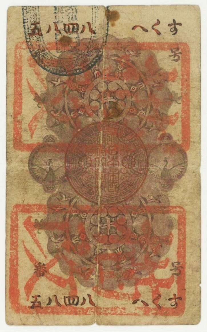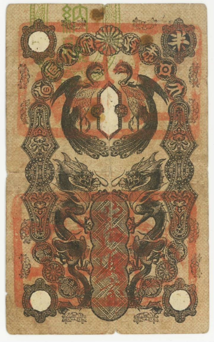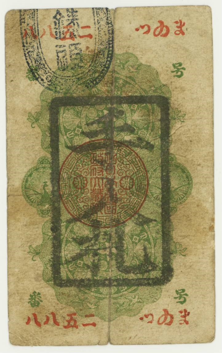 | 637番 明治通宝 半円 変造札 (「描改」朱印 表裏各2) |