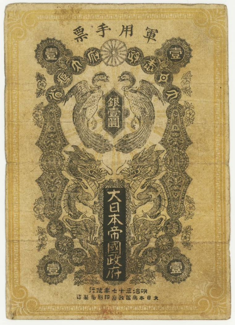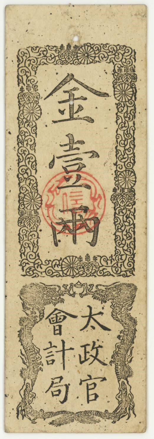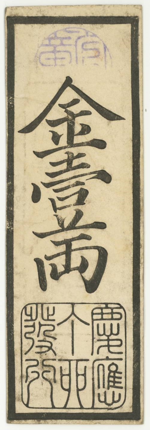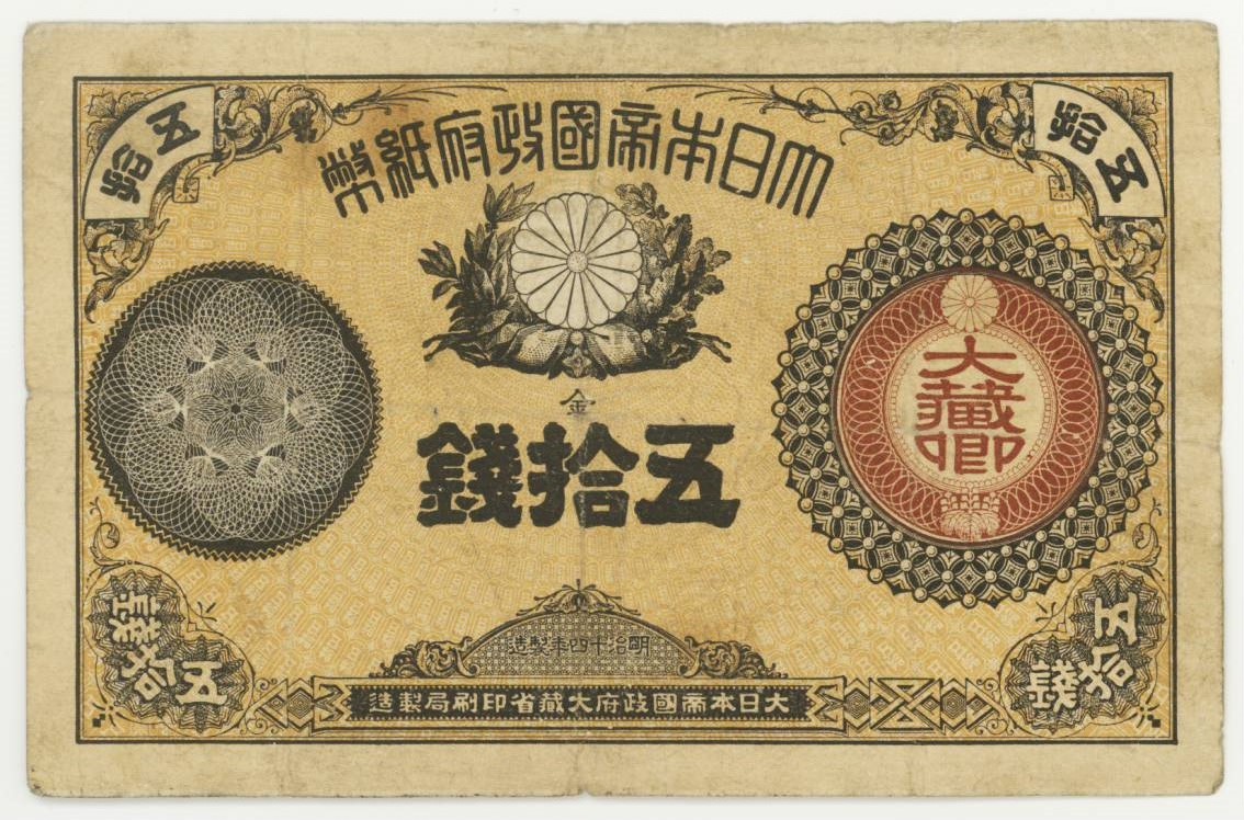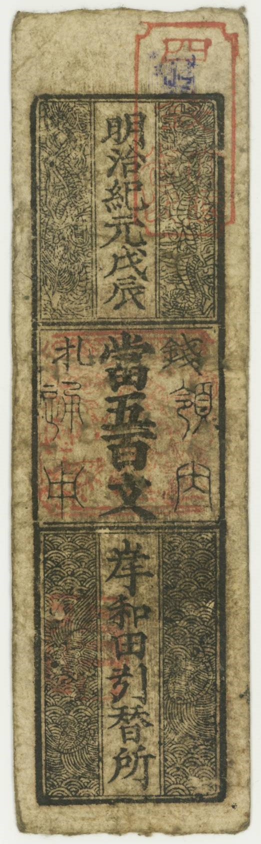 | 637番 明治通宝 半円 変造札 (「描改」朱印 表裏各2) |