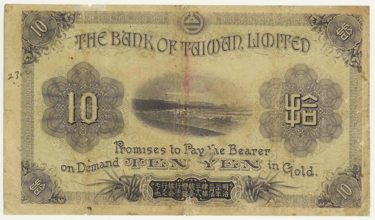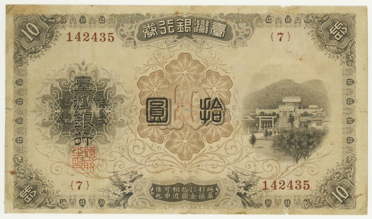 577番 台湾銀行券 改造10円 #16-6 中央小切レ,小ホツレ |