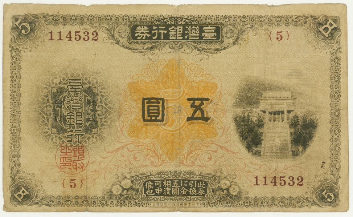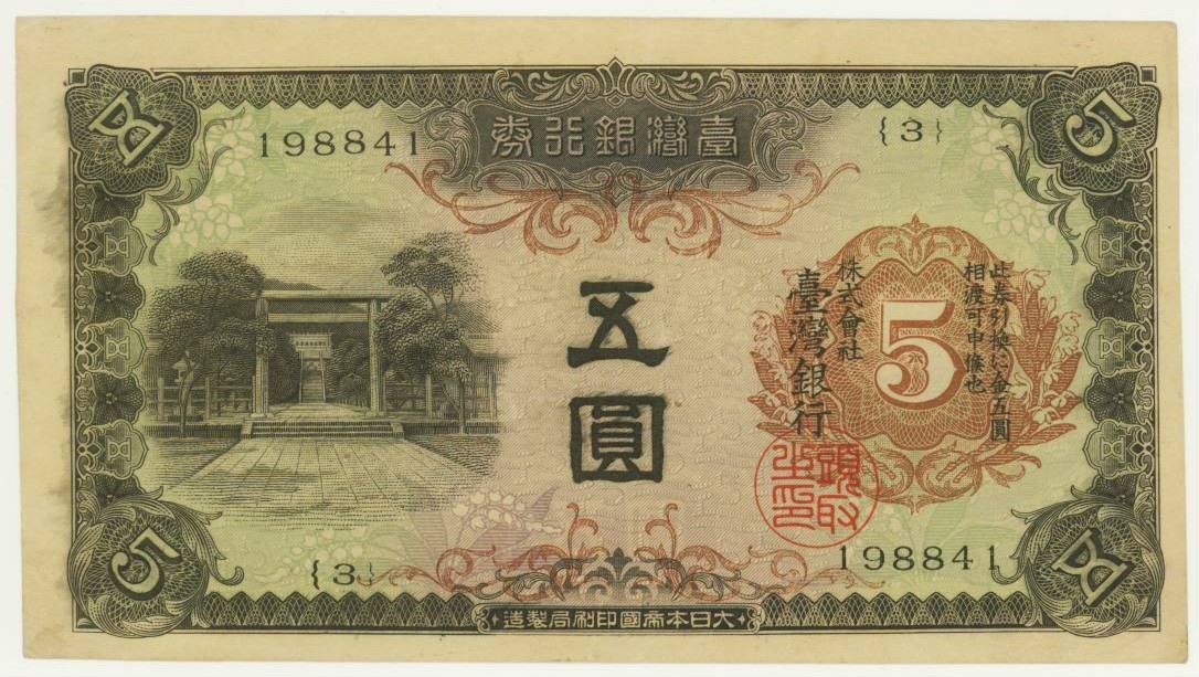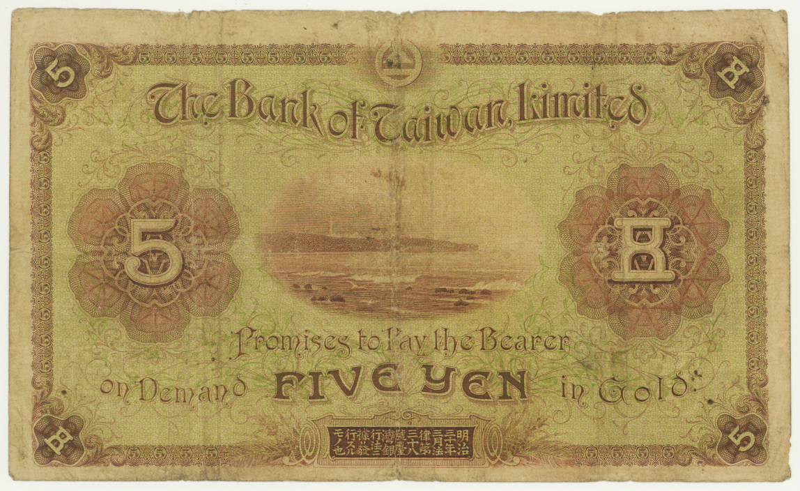 | 578番 台湾銀行券 改造5円 #16-7 縁小ホツレ |