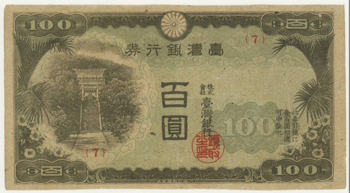 581番 台湾銀行券 現地刷乙100円 #16-18 |