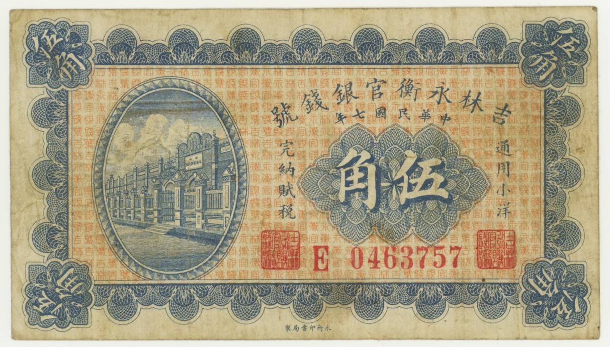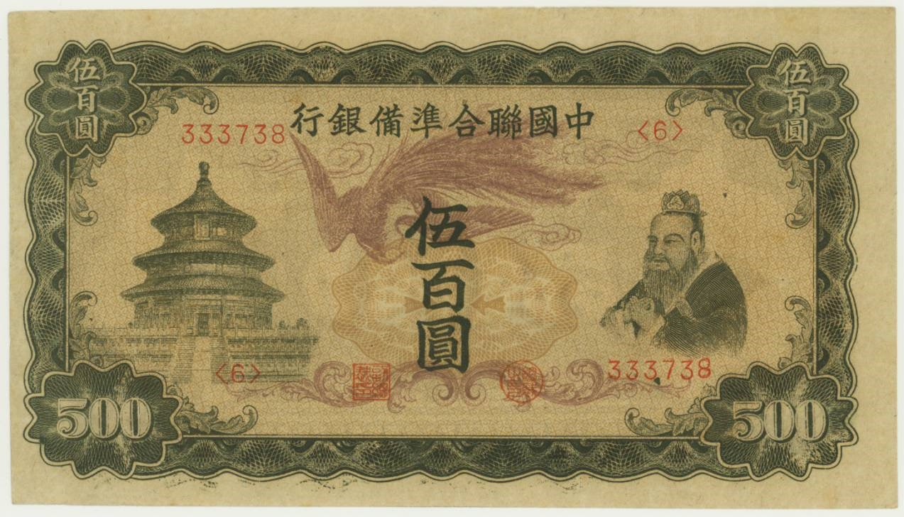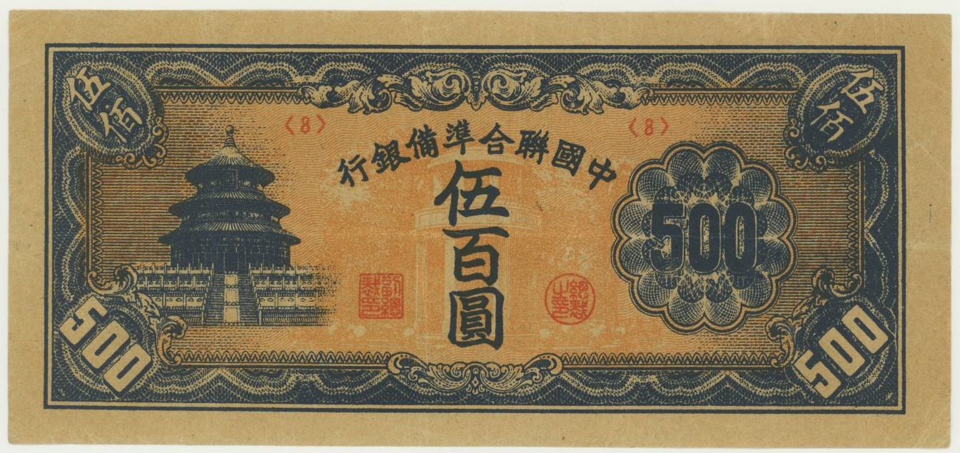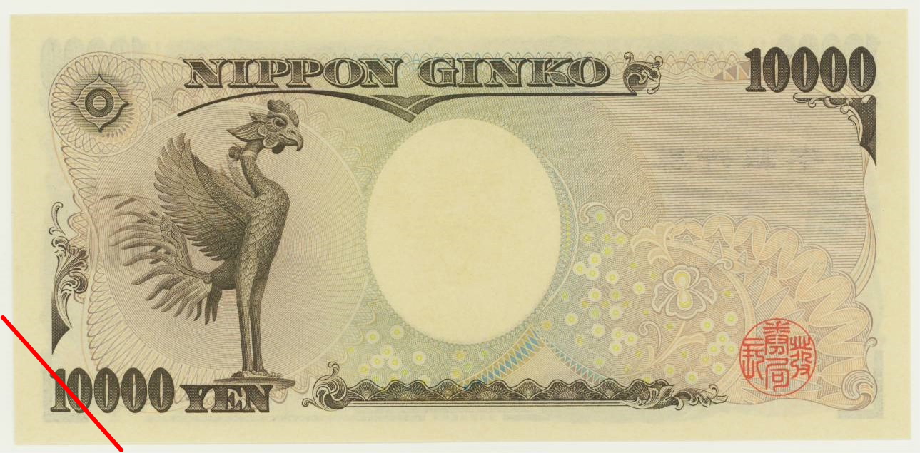 607番 中央儲備銀行5000円 記号のみ 横長 民34 外283 裏2ヶ所剥シ跡 |