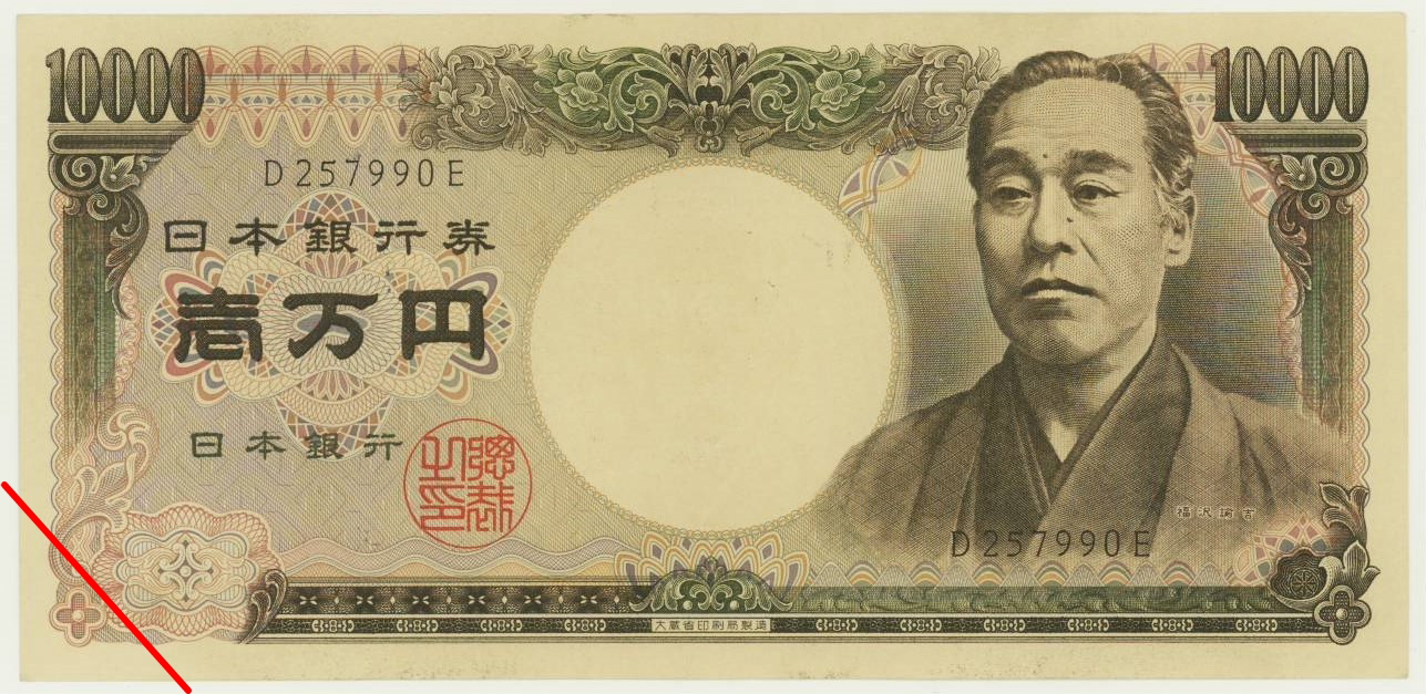 601番 旧福沢1万円 黒 1桁 大蔵省 |