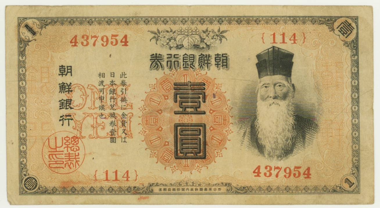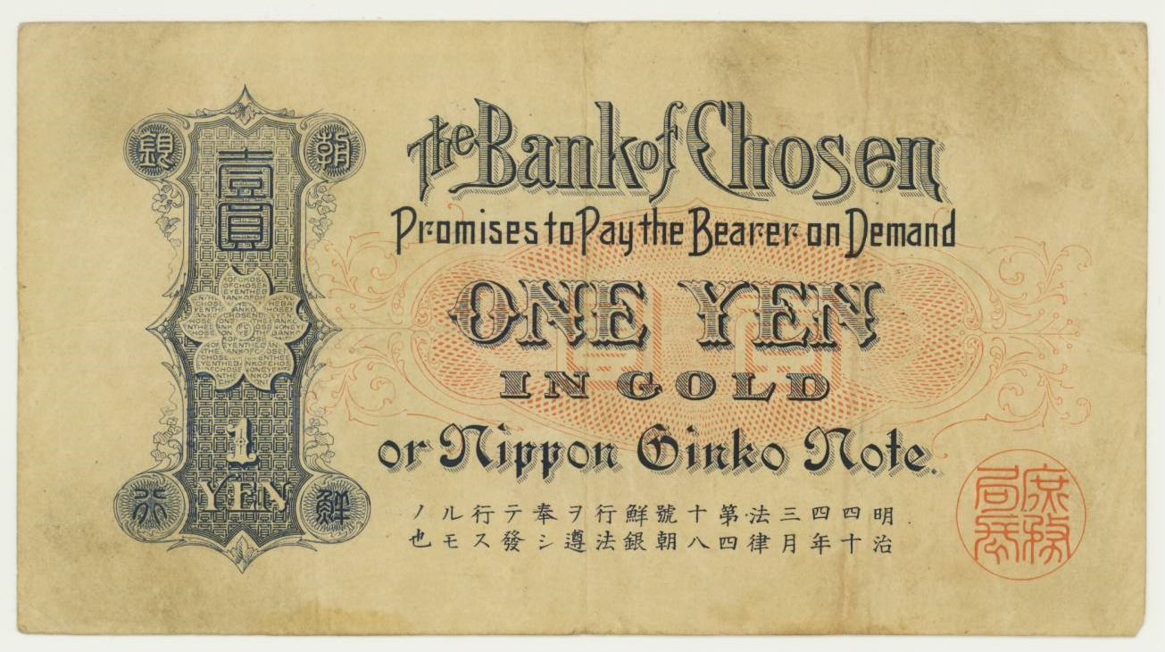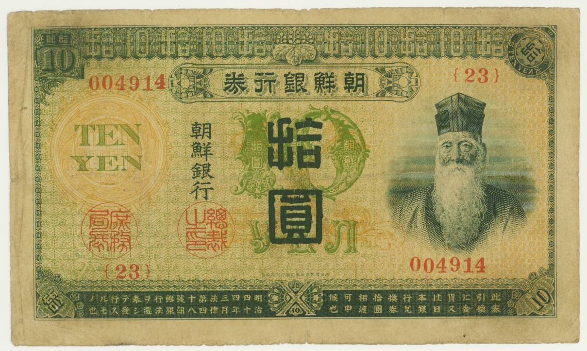 602番 朝鮮銀行券10円 朝紙14 小ホツレ 針穴4 |