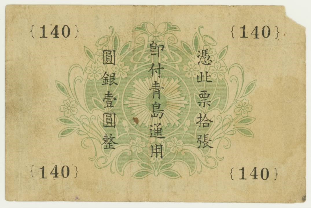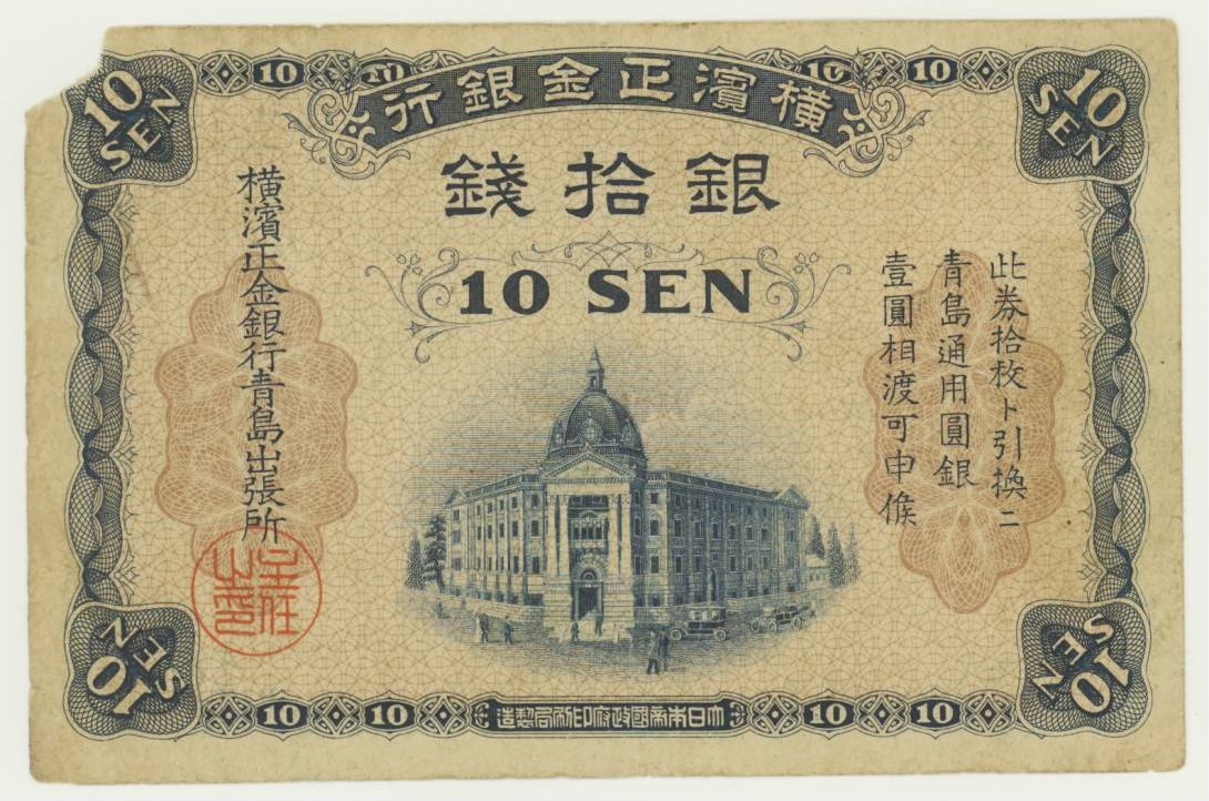 614番 横濱正金銀行 銀拾銭 青島 左上角欠損 |