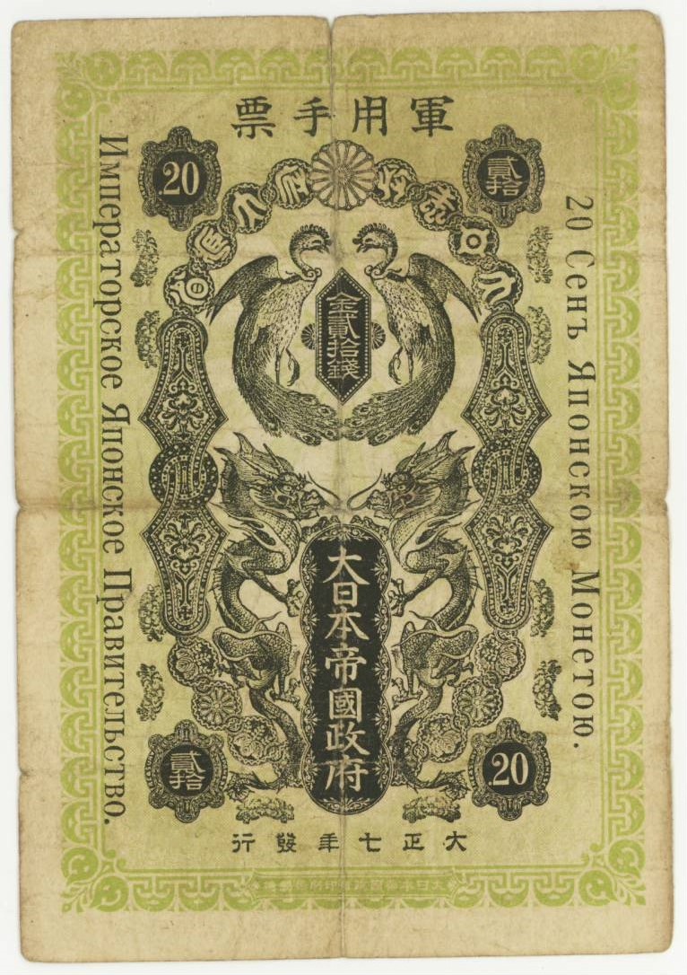 644番 シベリア出兵軍票 金貳拾銭 折目小切レ |
