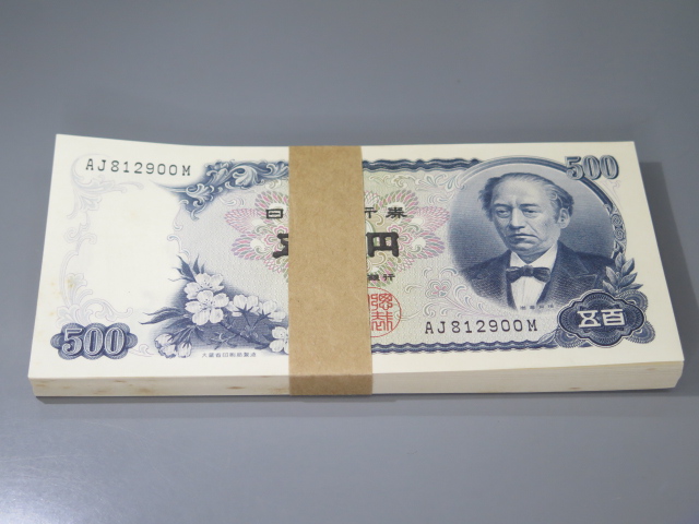 682番 新岩倉500円 黒 2桁 100枚帯封 小シミ |