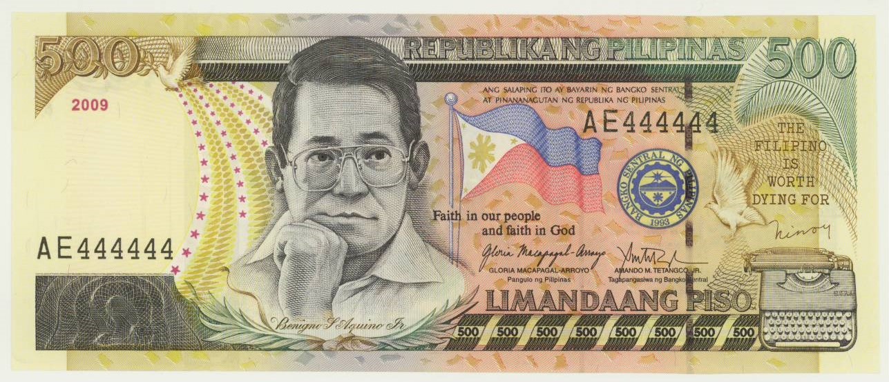 694番 フィリピン 500ペソ札 黒番 2桁 AE444444 |