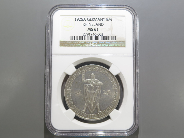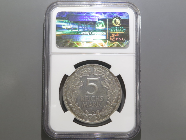 731番 ドイツ ワイマール共和国 5ライヒスマルク銀 1925A NGC MS61 |