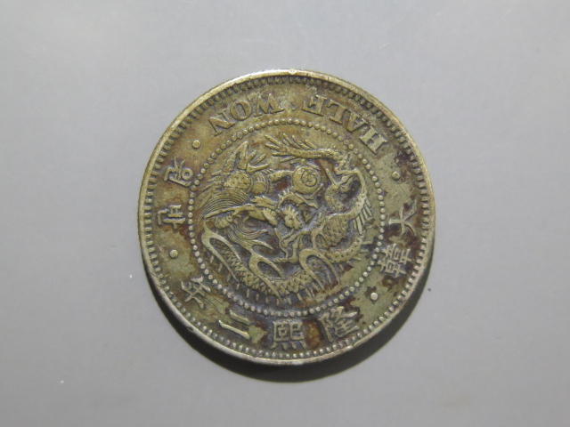 754番 朝鮮 半円銀 大韓 隆熙2年 古色 |