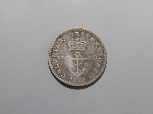 834番 英領西インド諸島 1/16ドル銀 1822 KM1 |