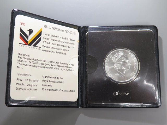838番 オーストラリア 南オーストラリア州150年 10D銀 1986 ケース入 |