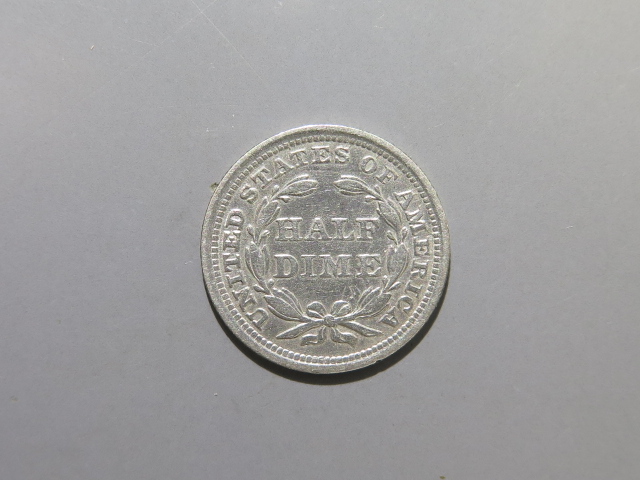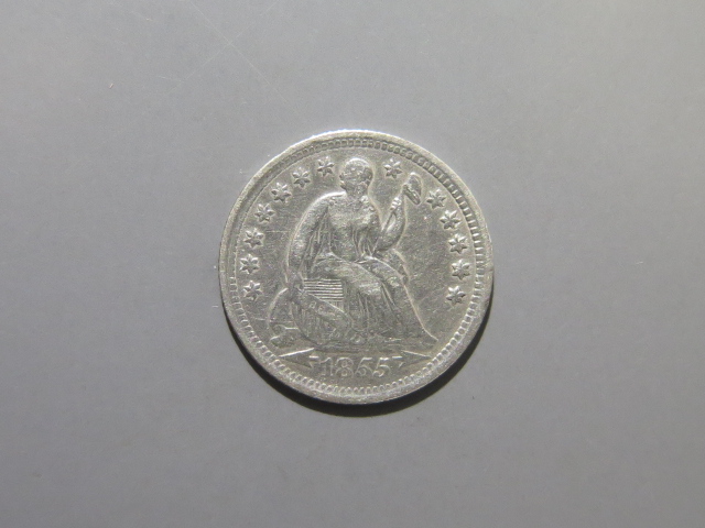 | 841番 アメリカ 女神座像 5C銀 1855(矢印付) |