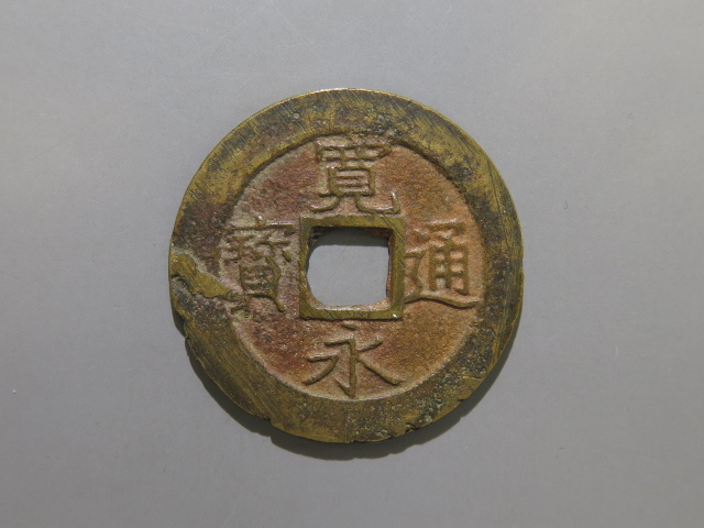 890番 新寛永 鉄四文 仿鋳 鋳写 短尾寛 輪小欠ケ |