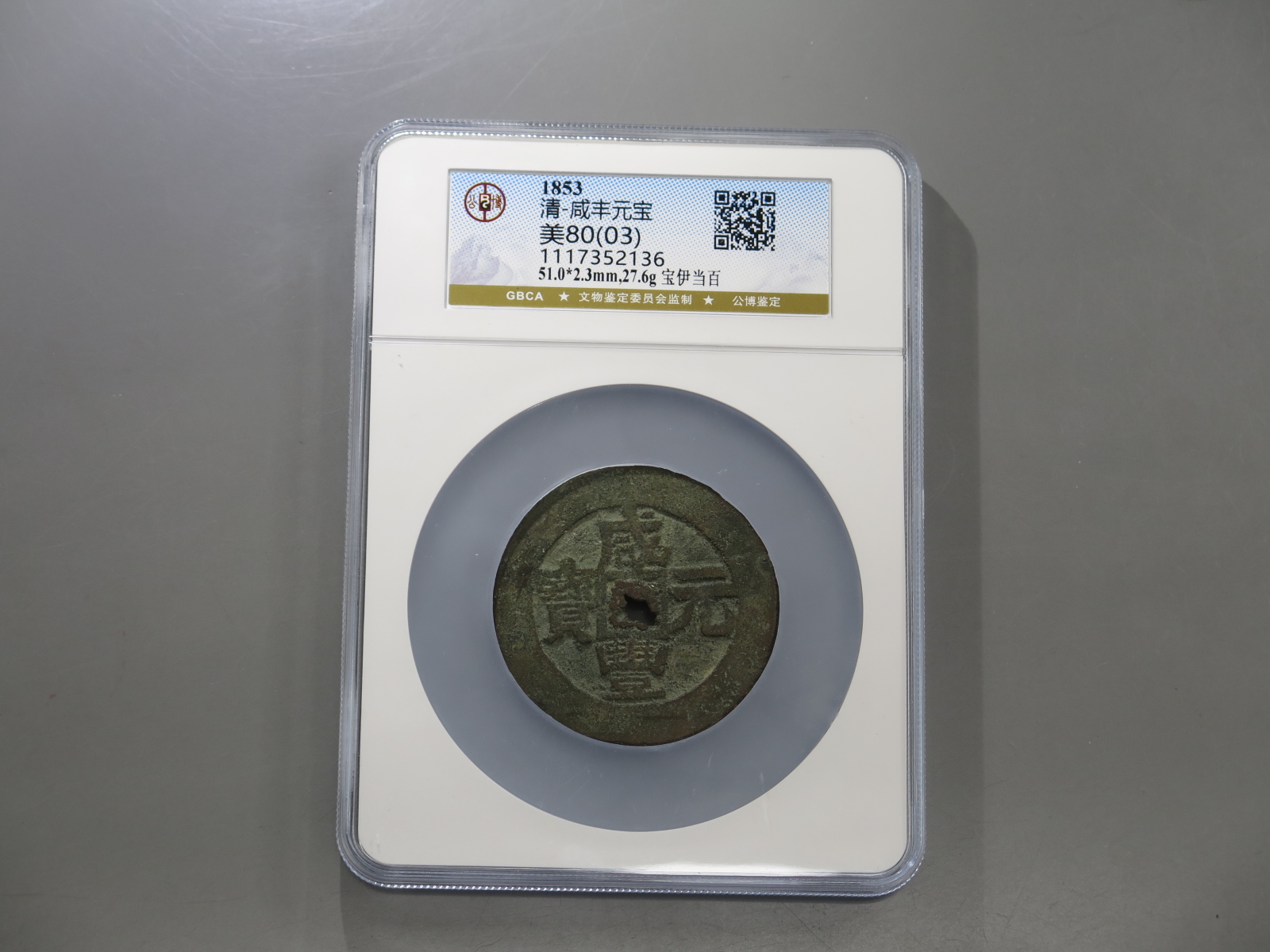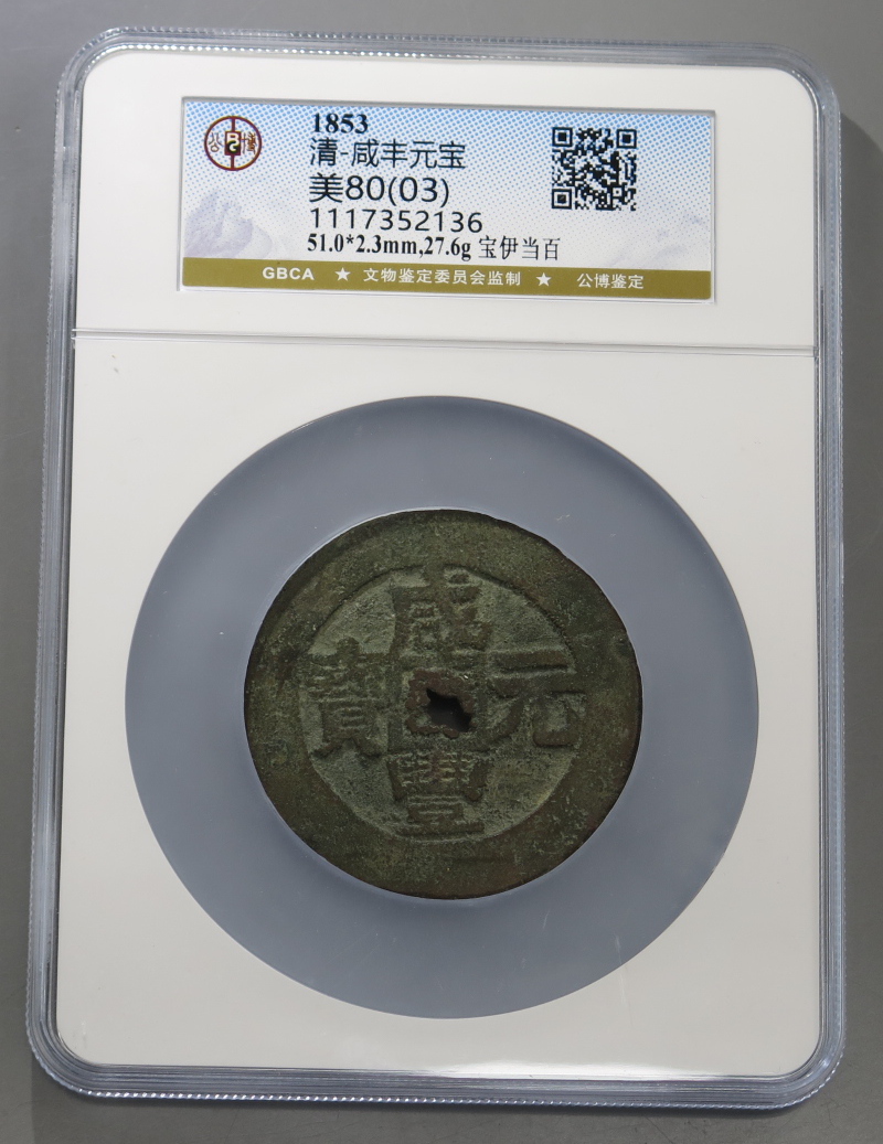 | 71番 咸豊元宝 宝伊局 当百 尓ハ貝宝 赤銅質 GBCA美 |