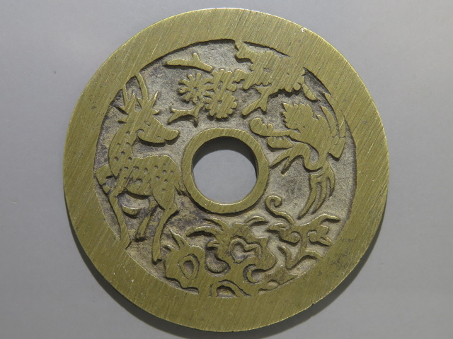 91番 中国絵銭 長命富貴 金玉満堂 鹿鶴図 |