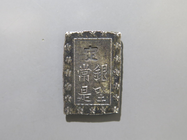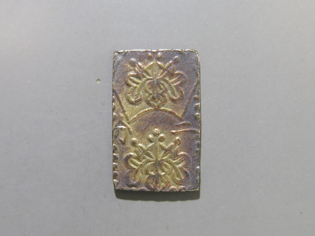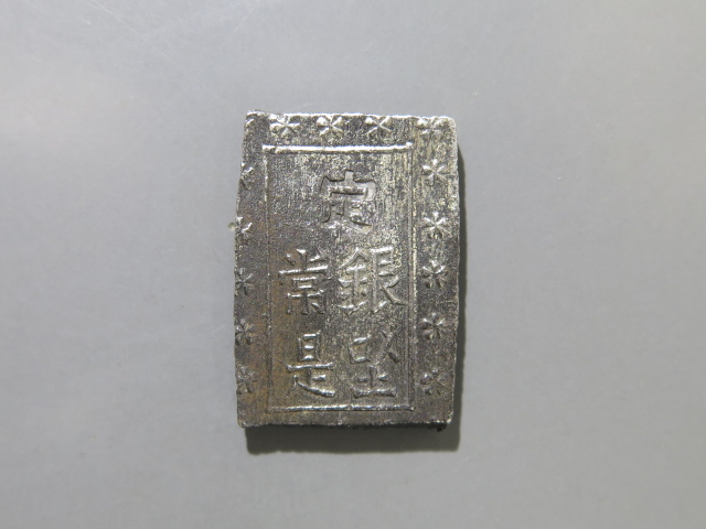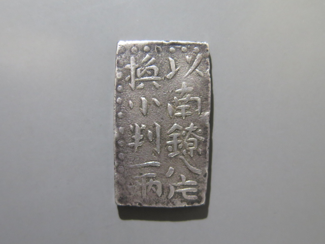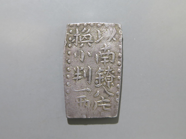 | 498番 古南鐐二朱銀 大型 27.67×15.92㎜ 両替印1 |