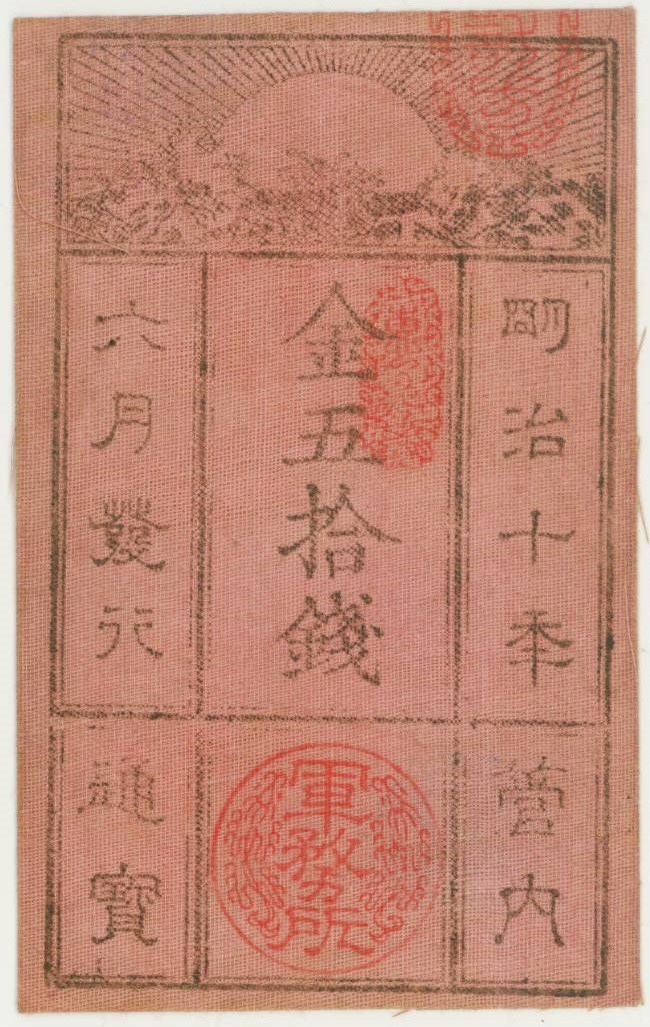 525番 西郷札 金五拾銭 桃色 |