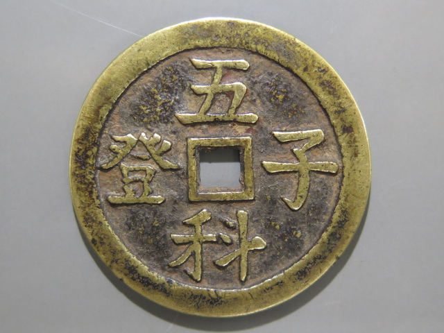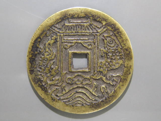 | 208番 中国絵銭 五子登科 背魚躍竜門図 |