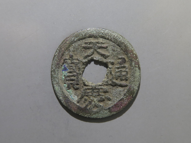 267番 安南 歴代 天慶通宝 俯宝 斜穿 青錆 |