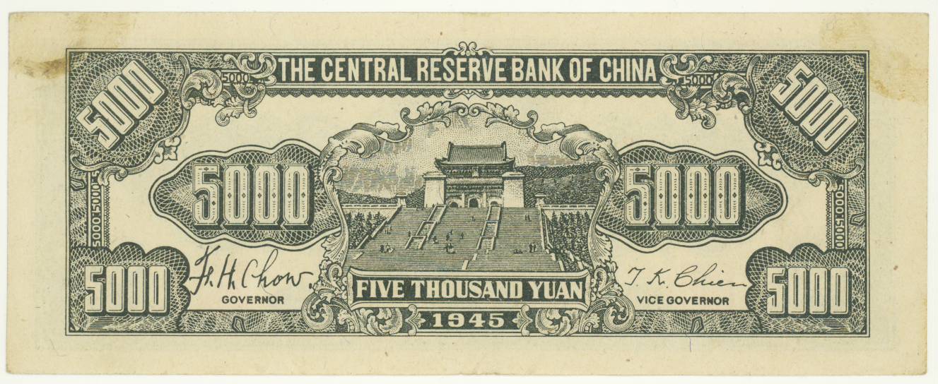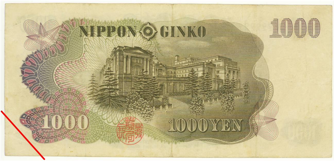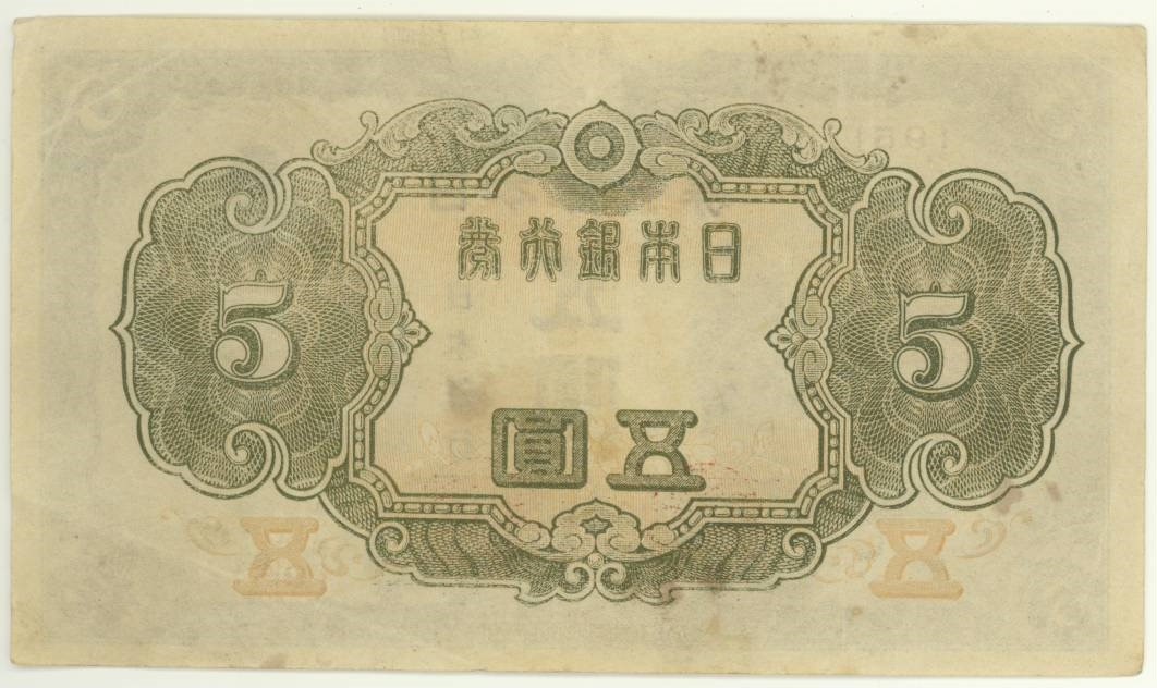 621番 中央儲備銀行5000円 記号のみ 民34 外283 裏剥シ跡2 |
