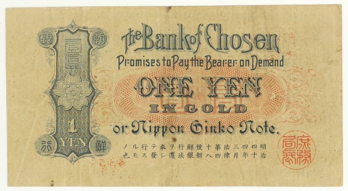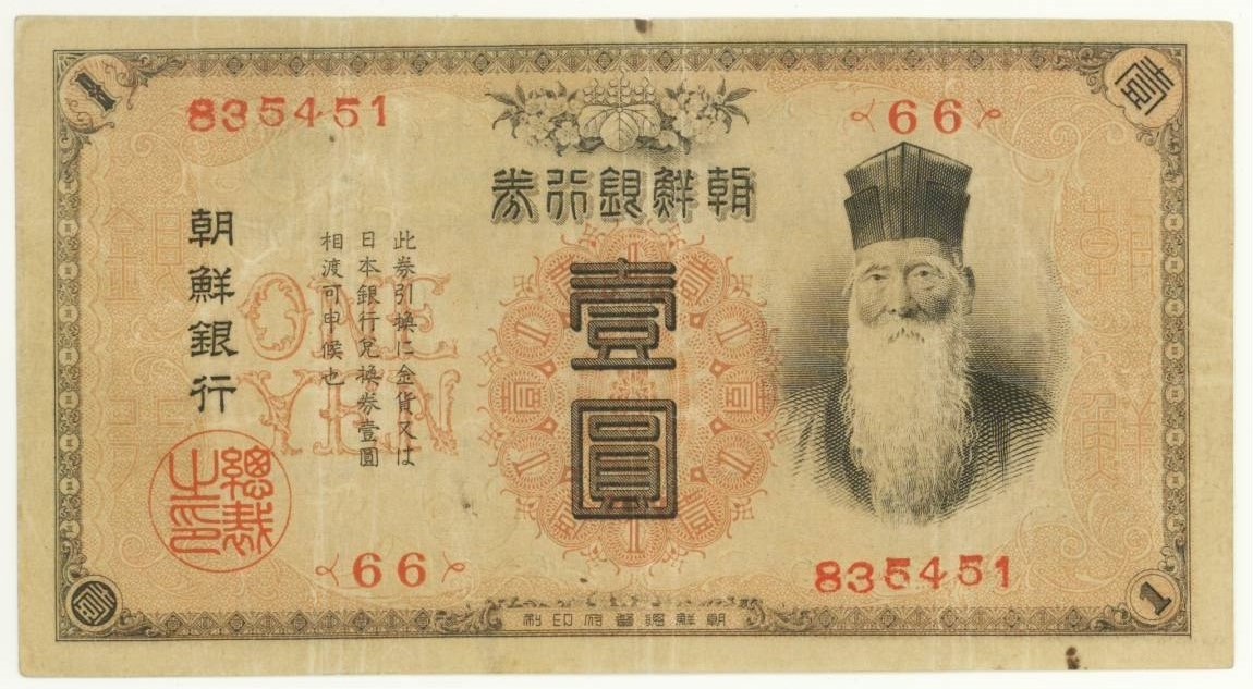 | 615番 朝鮮銀行券1円 総督府 朝紙16 |