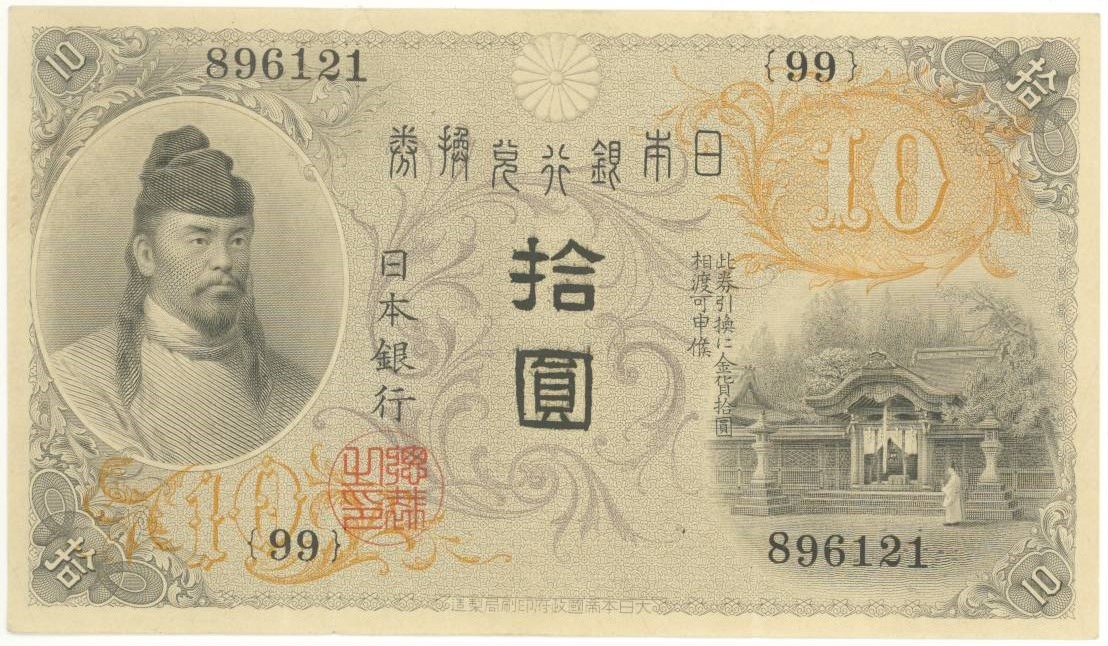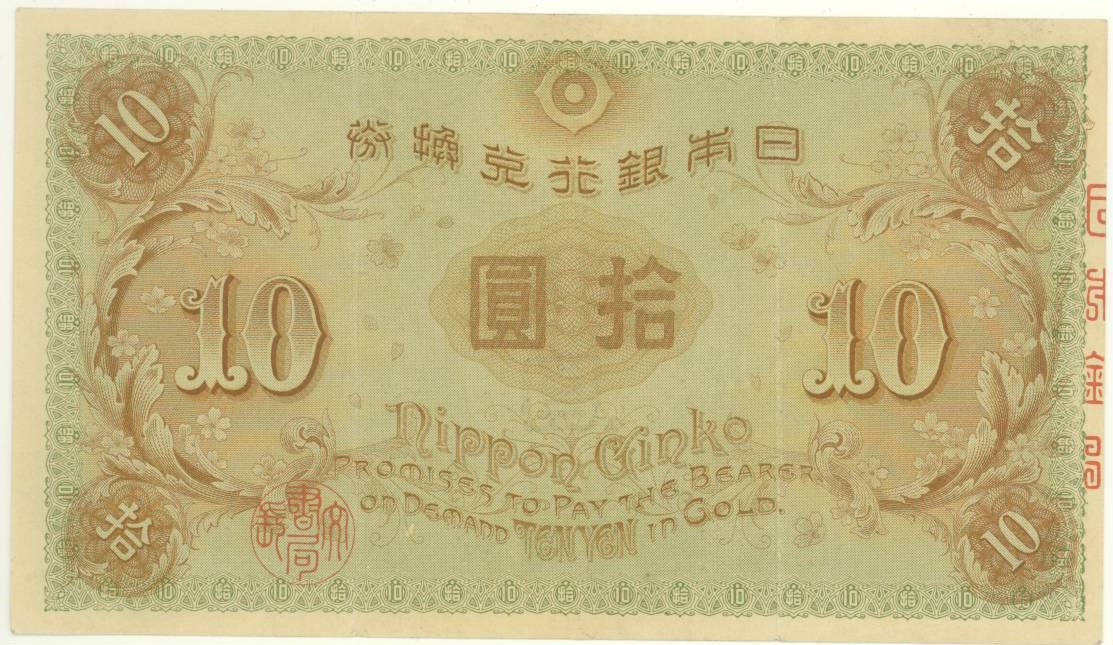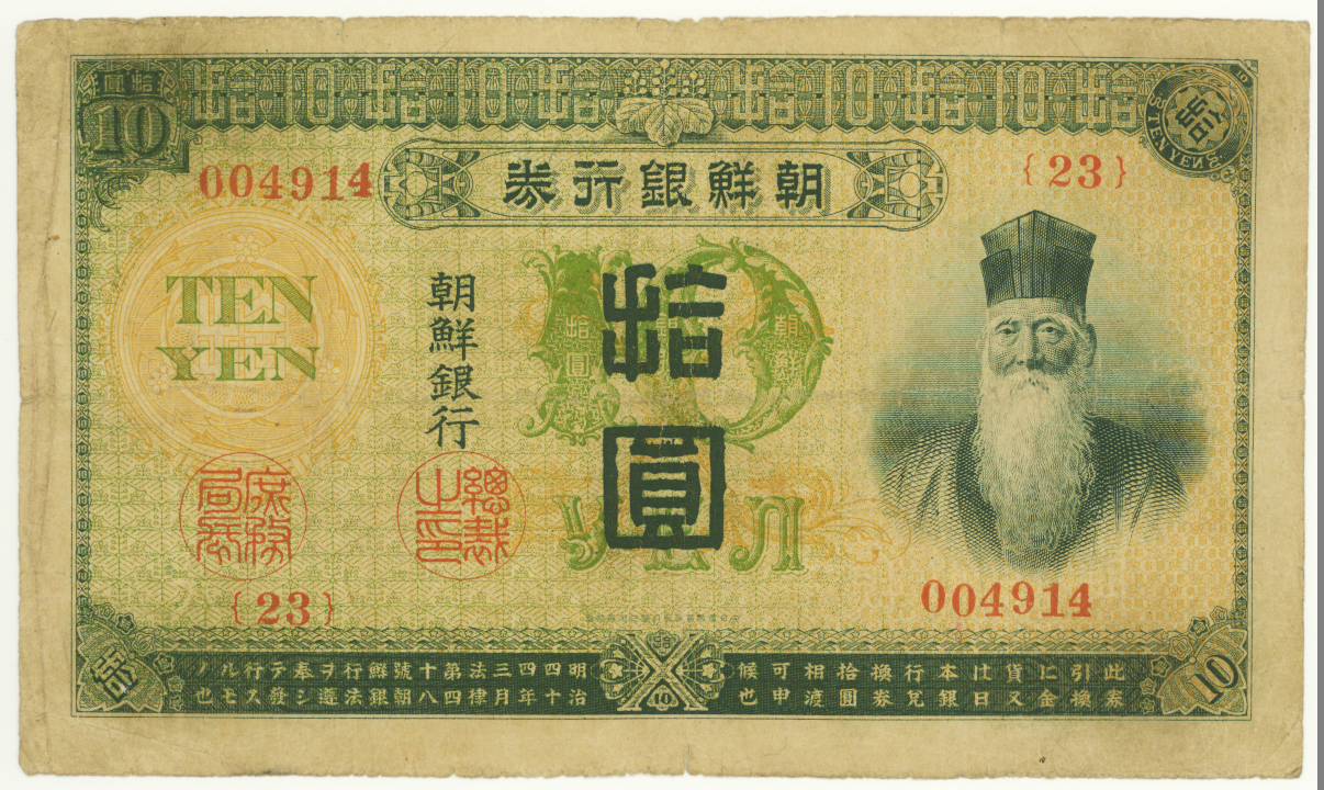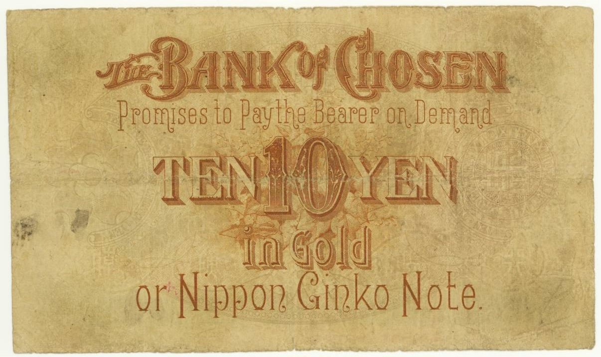 616番 朝鮮銀行券10円 朝紙14 小切レ ホツレ 針穴4 |