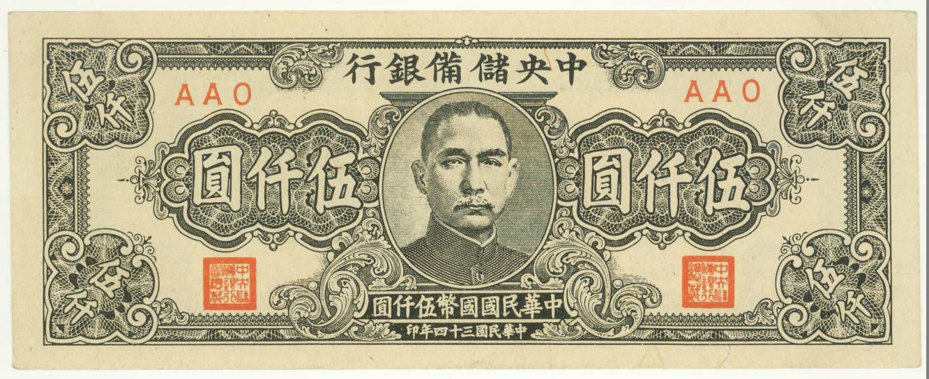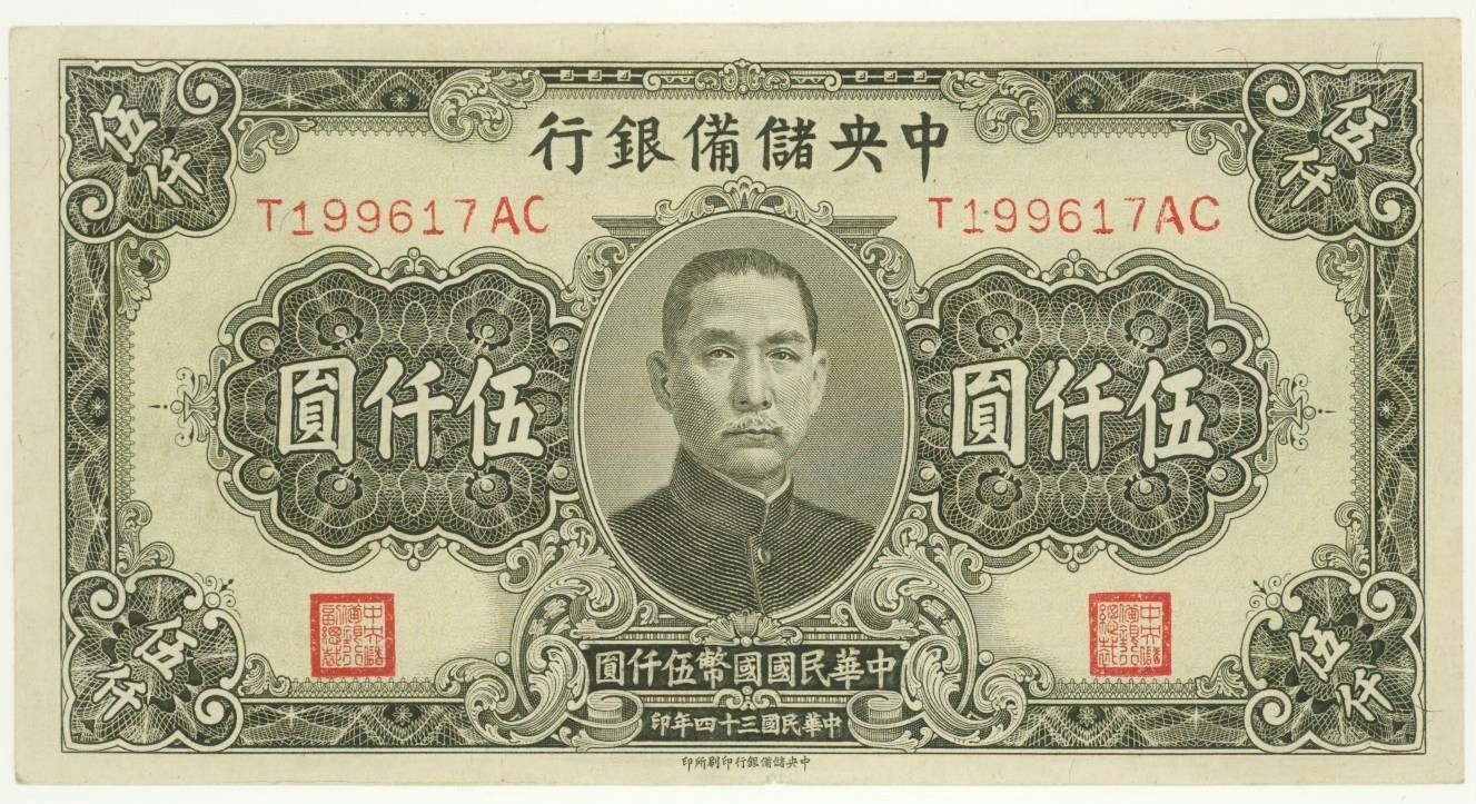 622番 中央儲備銀行5000円 記番号 民34 外281 |