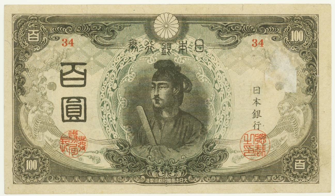 614番 大東亜戦争軍票 蘭印 は号100ルピア 軍13A 小シミ |