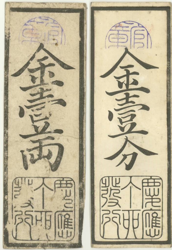 | 671番 兵庫開港金札 金壹両,金壹分 計2枚 |