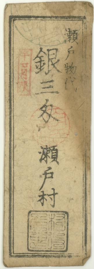 687番 瀬戸村 瀬戸物代 銀三匁 小穴2 シミ |
