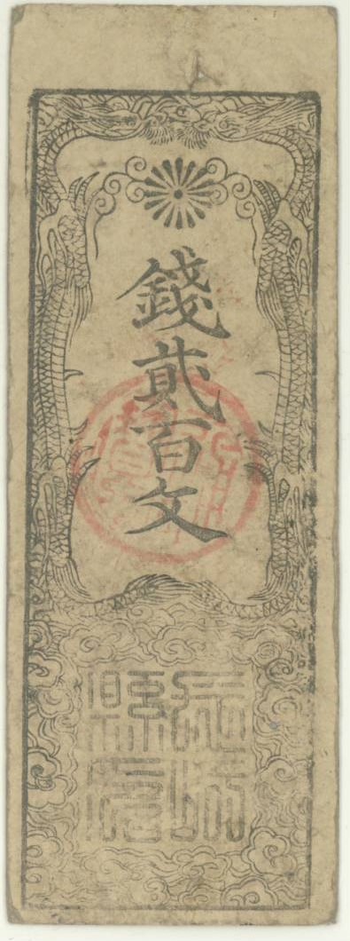 | 688番 長崎県札 銭貳百文 針穴2 |