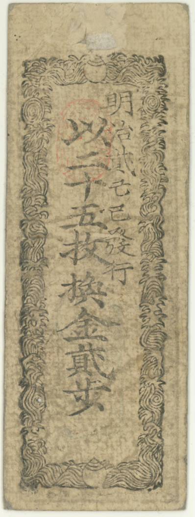 689番 伊勢崎会計所 銭貳貫五百文 未完成札 小シミ |