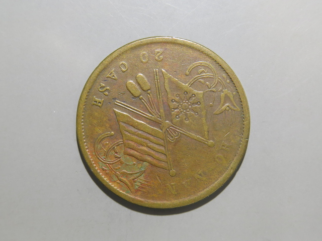 699番 銅幣 河南省造20文 HONAN 135度傾打 |