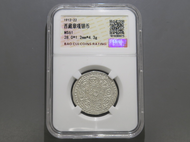 | 730番 中国西蔵タンカ銀幣 BAOスラブ入 MS61 |
