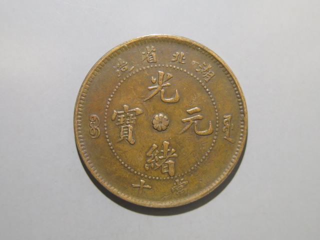 733番 銅幣 光緒元宝 湖北省造 当十 背浙江竜 |