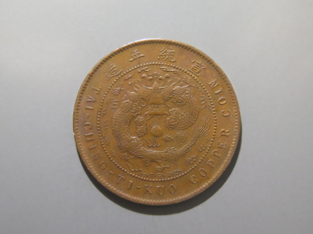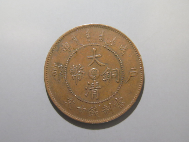 734番 銅幣 大清銅幣 戊申10文 中心粤 背宣統年造 |