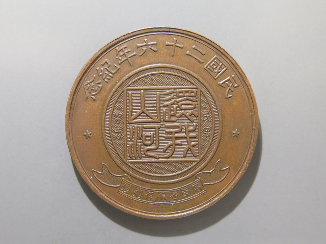 736番 銅メダル 蔣委員長 背還我山河 民国二十六年紀念 |