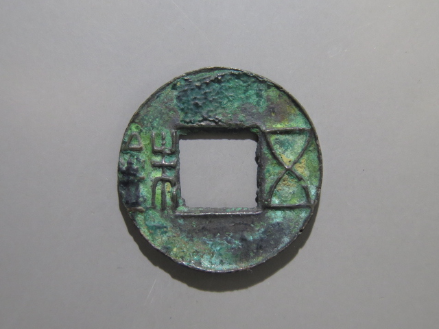 | 12番 前漢 赤側五銖 上横文 青錆 |