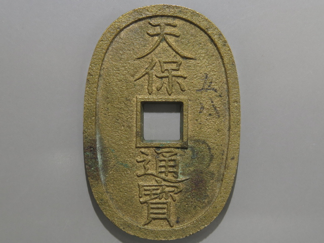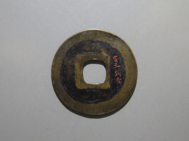 128番 天保通宝 本座細郭 母銭 墨書有 |