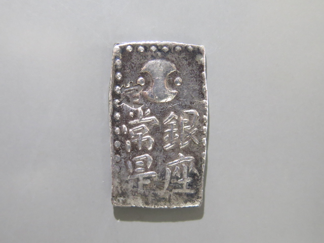 422番 元禄豆板銀 変型ダルマ型 元字 1.2g 小錆 |