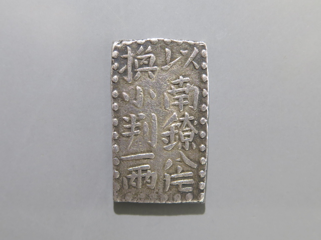 358番 新南鐐一朱銀 Ca 先細六 2.58g |