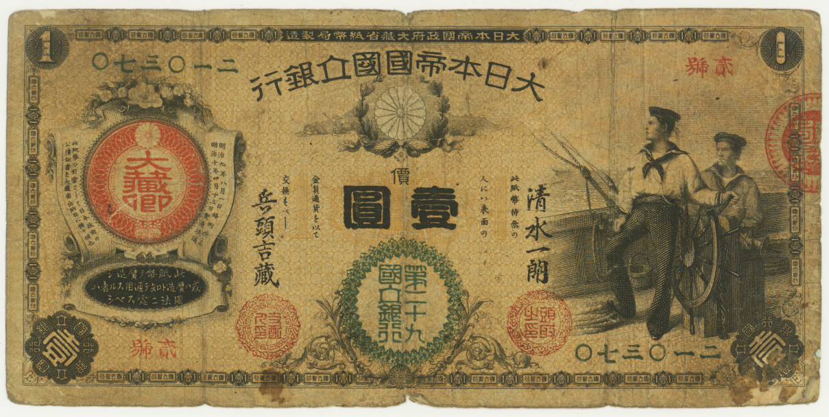 548番 新国立銀行券 水兵1円 第29銀行(愛媛県宇和島) |
