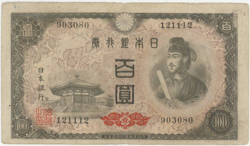 550番 3次中聖徳100円 証紙付 一ッ折 |